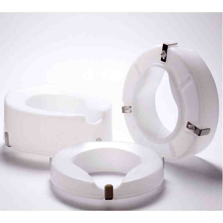 Asiento elevado de 15cm, para inodoros, con 3 trabas de acero inoxidable.![]()